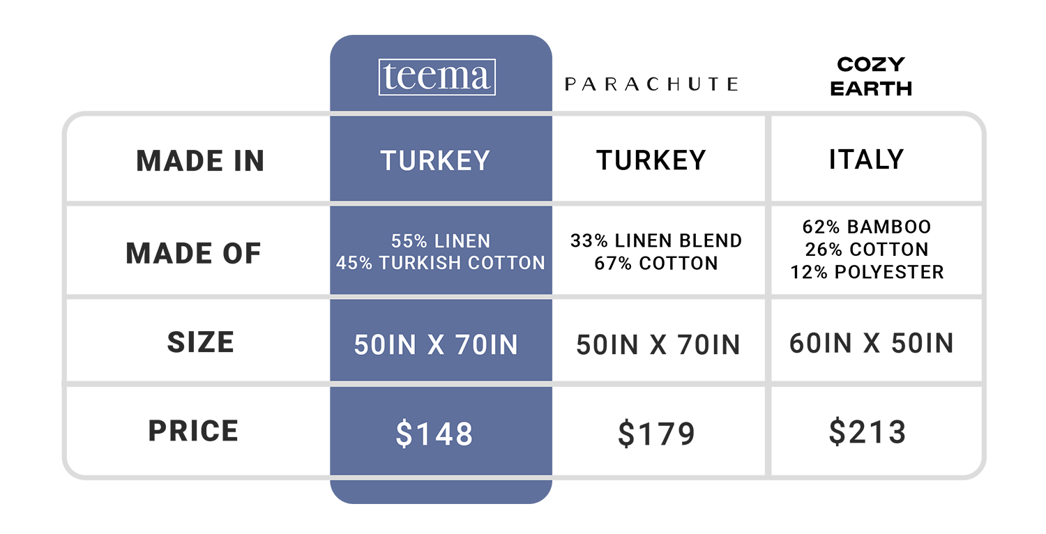 Teema Bath is crafted from organically grown Turkish cotton and OEKO-TEX certified. All of our products have undergone rigorous testing to ensure they are free of harmful chemicals—in other words, great for your skin!