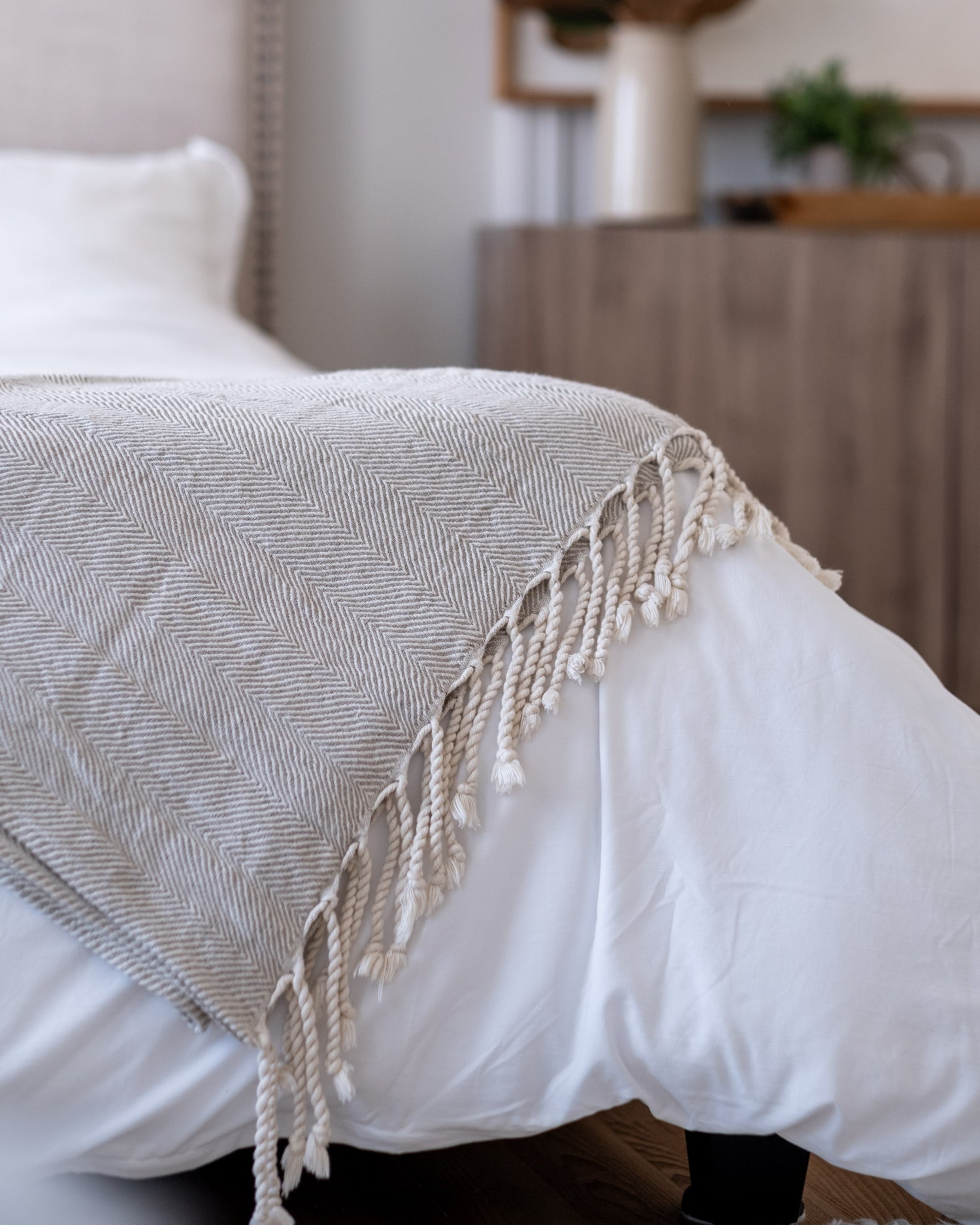 This throw features an elevated herringbone design paired with the perfect blend of linen and cotton, creating a luxurious yet lived-in feel.