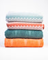 These are so beautiful and bright and perfect. I love love these towels. They look amazing. They dry quickly. They are soft and absorbent. We like to use ours as towels when on vacation and then as a light blanket for the flight home. They roll up so compactly so they fit easily in a carry on. These are the perfect towels. I bought the bundle as gifts for my friends and sisters.